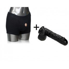 Säästöpaketti Strap On Housut Ja Niihin Sopiva Taipuisa Ja Pehmeä Dildo